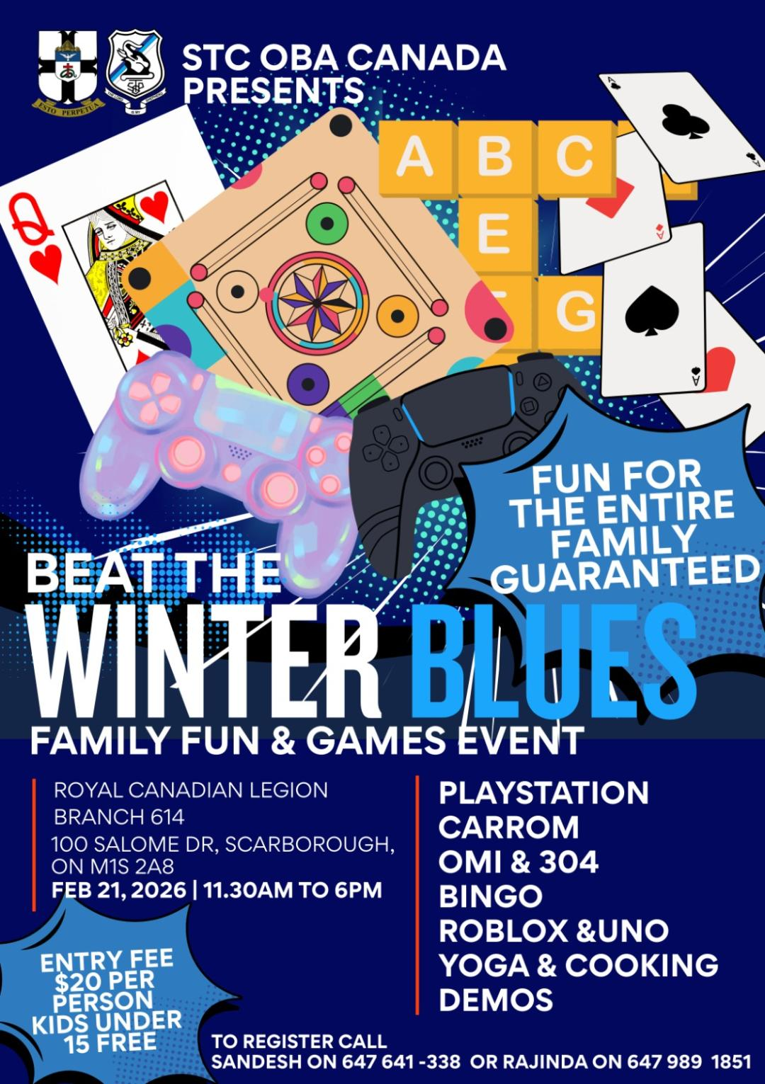The cold weather is still here, but we have the ultimate cure! This is your friendly reminder that the STC OBA of Canada “Beat the Winter Blues” Family Fun & Games Event is just around the corner.